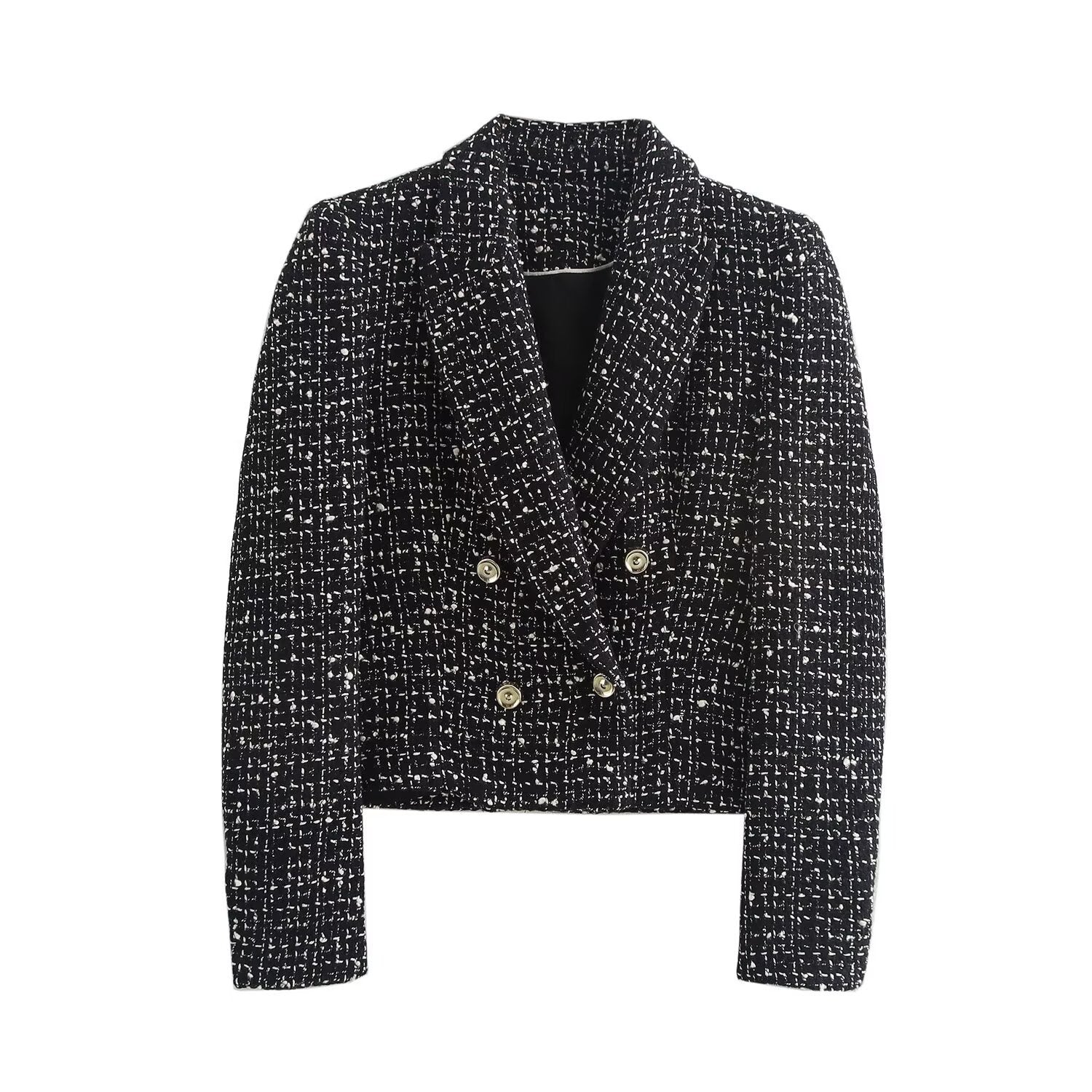 Collar long sleeved double breasted small fragrant style suit jacket for women