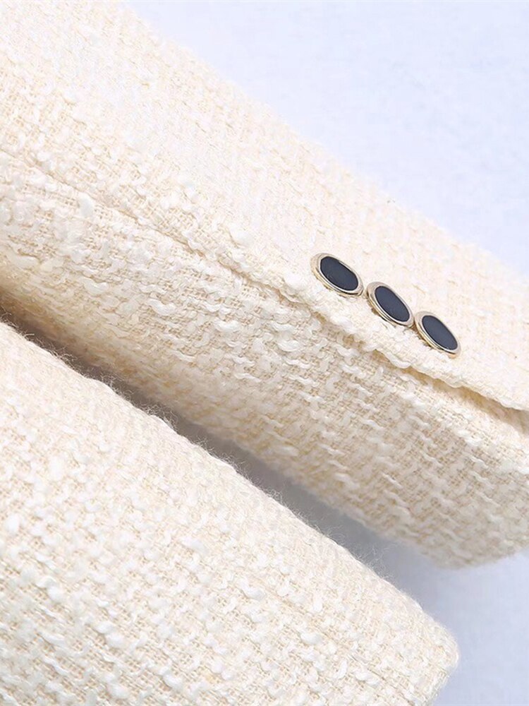 Office Lady Contrast Color Blazer For Women Notched Long Sleeve Double Breasted Fashion Coat
